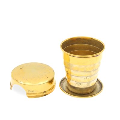 Cartier, bicchiere da caccia pieghevole in argento vermeil