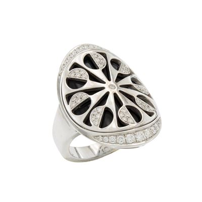 Anello in oro bianco 18kt smalto nero e diamanti
