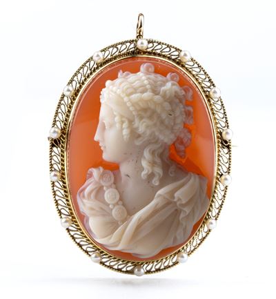 Spilla In Oro Con Cammeo E Perle
