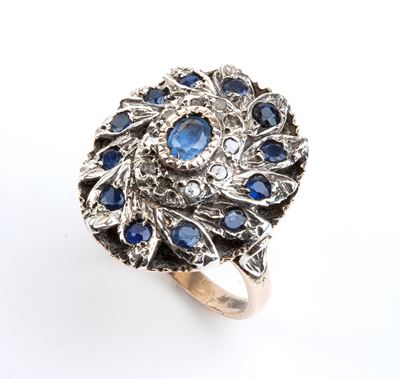 Anello In Oro Ed Argento Con Zaffiri E Diamanti