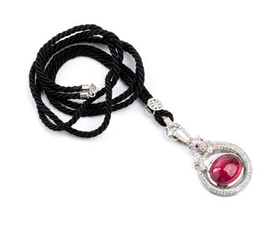 Girocollo Con Pendente In Oro, Diamanti E Rubino Composito