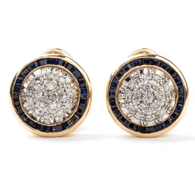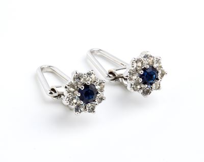Paio DI Orecchini In Oro Con Diamanti E Zaffiri