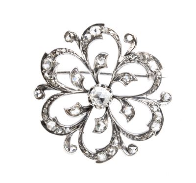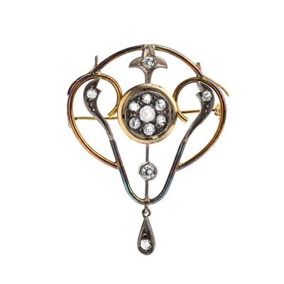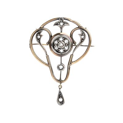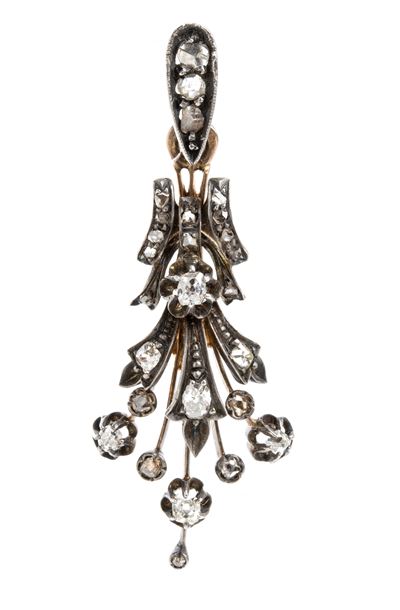 Spilla-Pendente In Argento, Oro E Diamanti Taglio A Rosa
