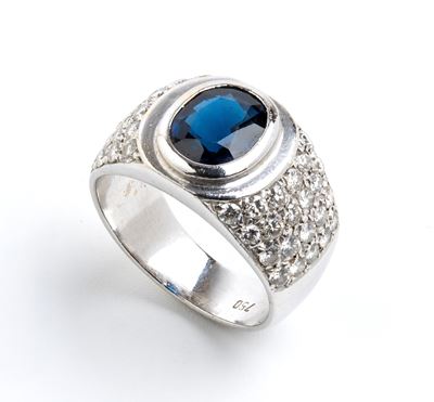Anello In Oro Con Zaffiro E Diamanti