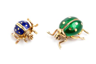 Coppia DI Spille A Forma DI Insetto In Oro E Smalti