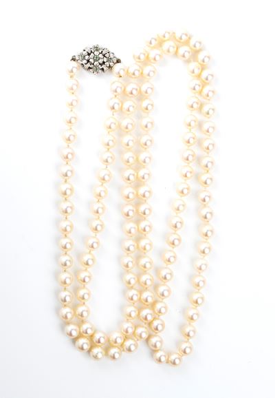 Collana DI Perle Con Chiusura In Oro Bianco E Diamanti