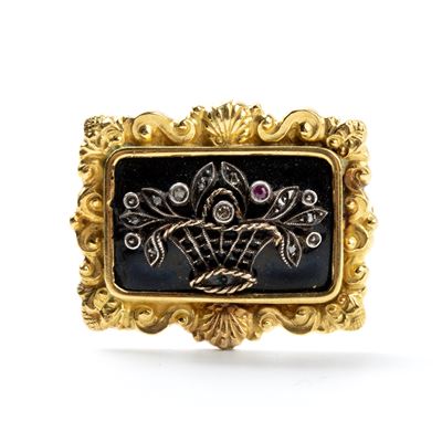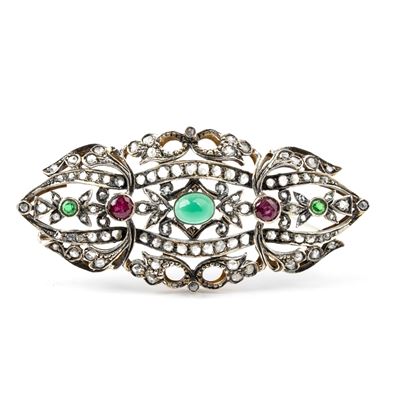 Spilla In Oro, Argento, Pasta Vitrea E Pietre