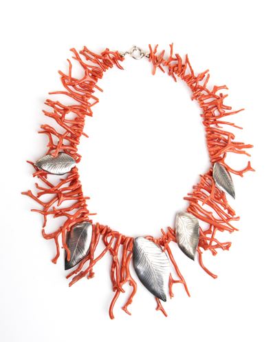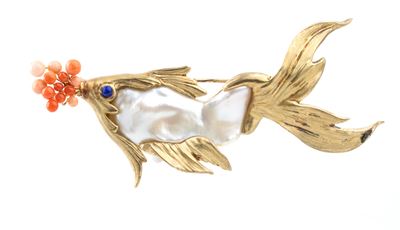 Pendente A Forma DI Pesce Con Corallo E Cristallo DI Rocca