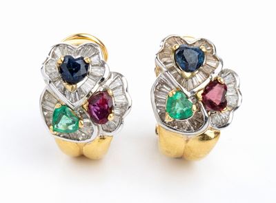 Orecchini In Oro, Diamanti, Zaffiri, Smeraldi E Rubini