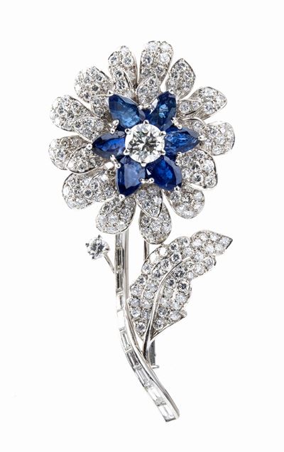 Spilla A Fiore In Oro Con Zaffiri E Diamanti