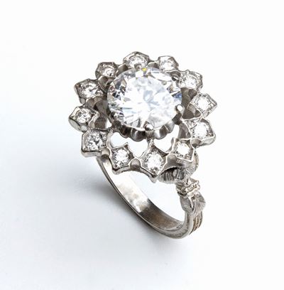 Anello In Oro Con Diamante Centrale Circa 1.70 Ct