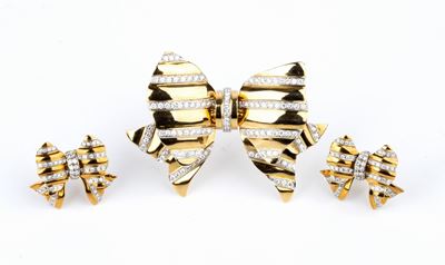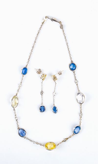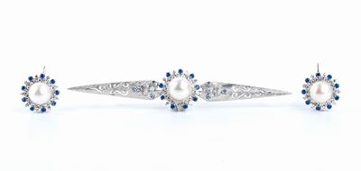 Demi - Parure Composta Da Una Spilla Ed Un Paio DI Orecchini Con Perle, Diamanti E Zaffiri