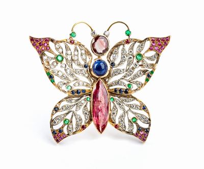 Spilla Farfalla In Oro Con Diamanti E Pietre DI Colore