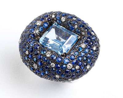 Anello Contrariè In Oro Con Zaffiro, Acquamarina E Diamanti