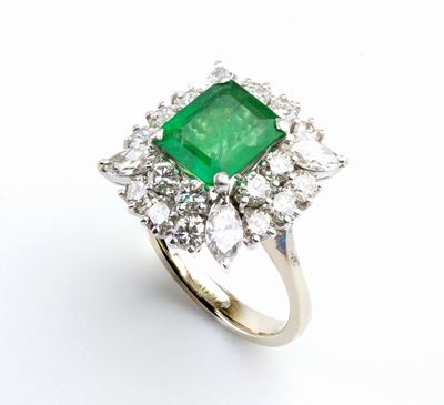 Anello In Oro Con Smeraldo E Diamanti