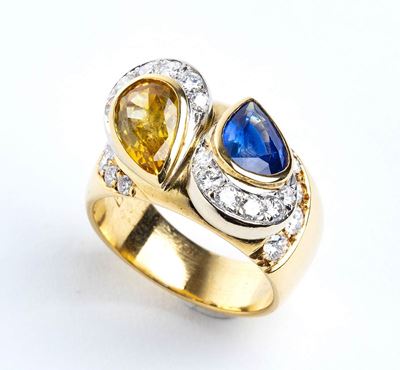 Anello Contrariè Con Gocce DI Zaffiro E Diamanti