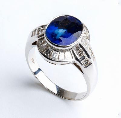 Anello In Oro Con Zaffiro E Diamanti