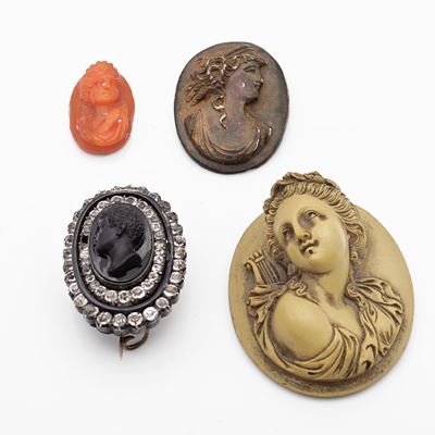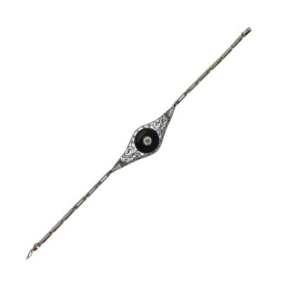 Antica spilla in oro giallo 18kt smalto nero e perline di diverso colore