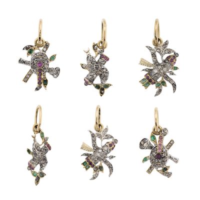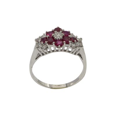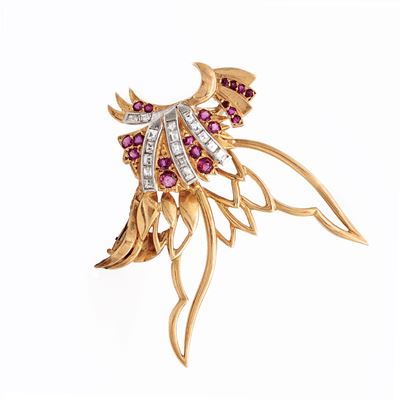 Spilla oro giallo e bianco 14kt con diamanti e rubini