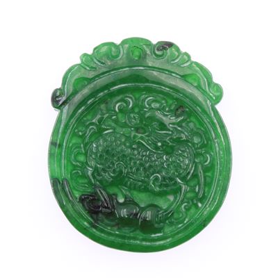 Pendente giada scolpita ed incisa a raffigurare un drago