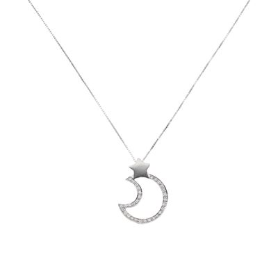 Pendente Luna con stella in oro bianco 18kt e diamanti