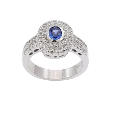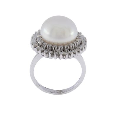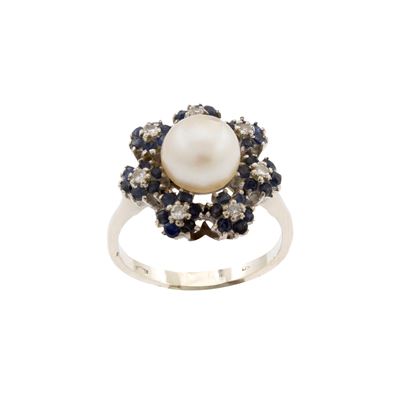 Anello in oro bianco 18kt perla zaffiri e diamanti
