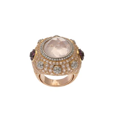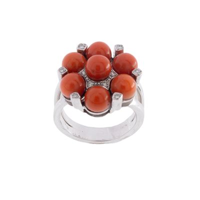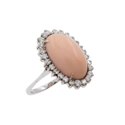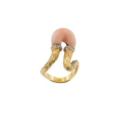 Anello in oro giallo 18kt corallo rosa e diamanti