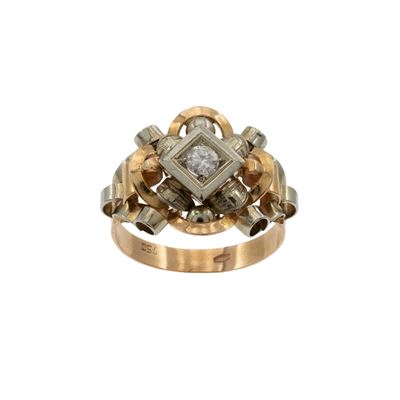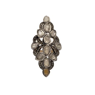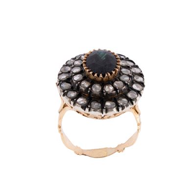 Antico anello in oro giallo e argento zaffiro e rose di diamante