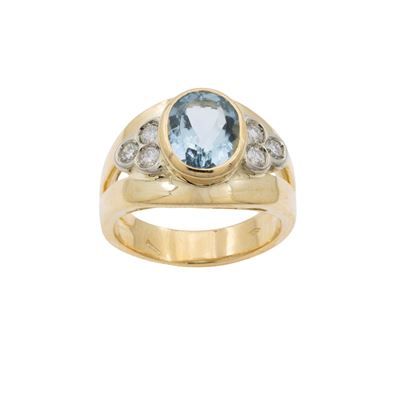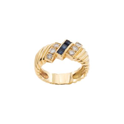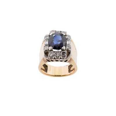 Anello in oro giallo e bianco 18 kt zaffiro sintetico e diamanti