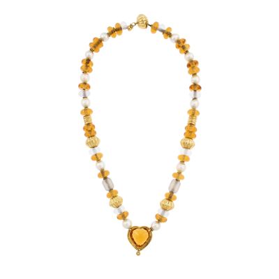 Collana bijou vintage in metallo dorato e pietre in resina colorata