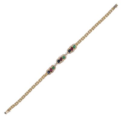 Bracciale bijou vintage in metallo dorato e paste vitree