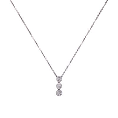 Collana con pendente a tre fiori in oro bianco 18kt e diamanti