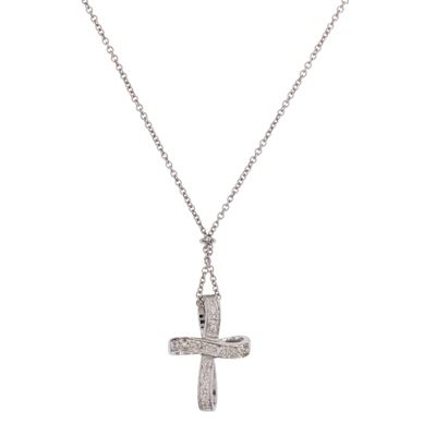 Collana con pendente a croce in oro bianco 18kt e diamanti
