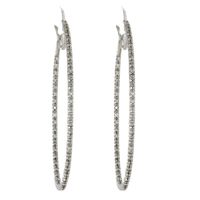 Orecchini Cerchi Ovali In Oro Bianco 18 Kt E Diamanti