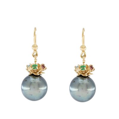 Orecchini Pendenti Perle Tahiti E Oro Giallo 14 Kt