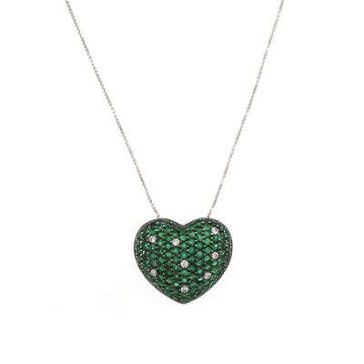 Pendente Cuore In Oro Bianco 18 Kt Smeraldi E Diamanti