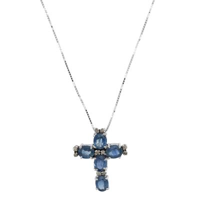 Pendente Croce In Oro Bianco 18 Kt Zaffiri E Diamanti