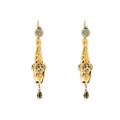 Orecchini Borbonici In Oro Basso E Smalto Policromo