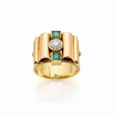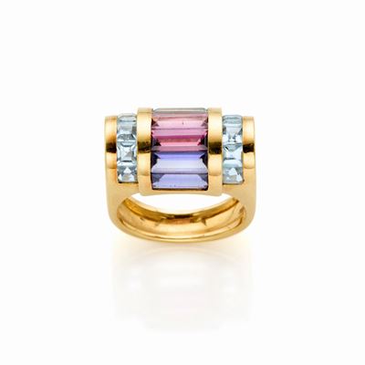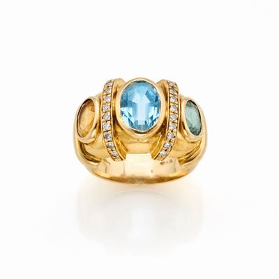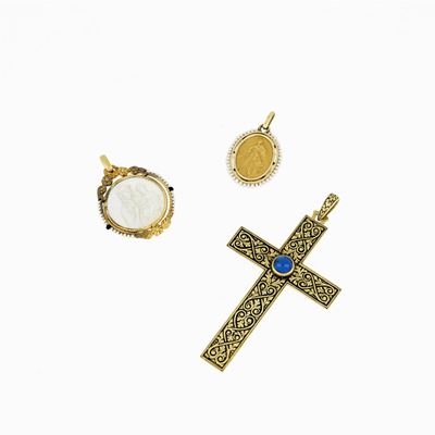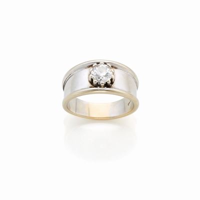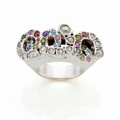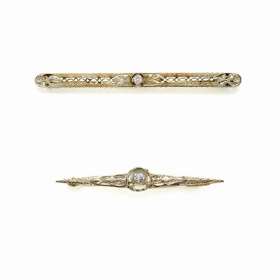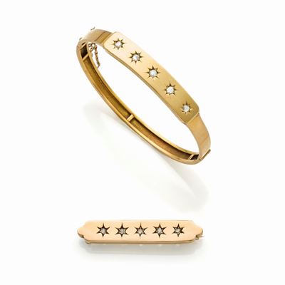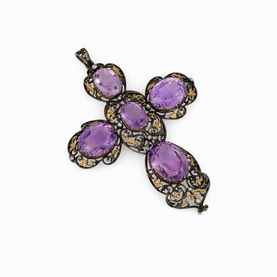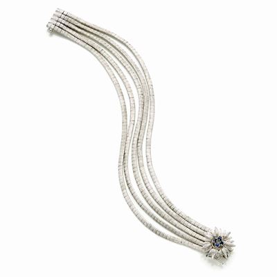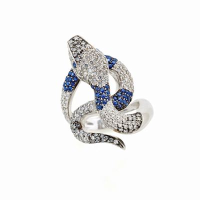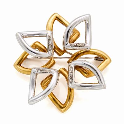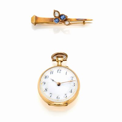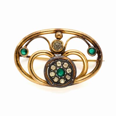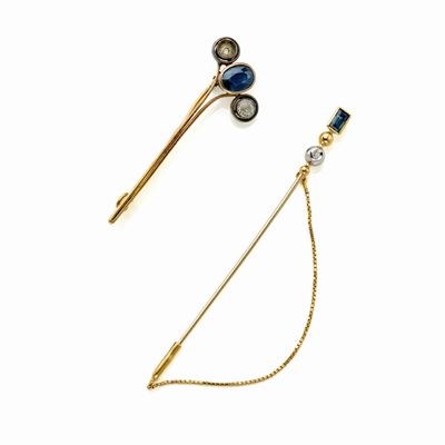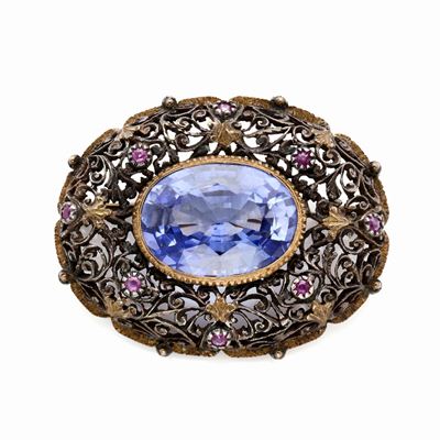 Spilla in Argento e Oro con Zaffiro Sintetico