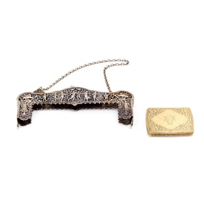Lotto composto da un orologio da tasca, due spille in oro e un pendente in argento dorato.
