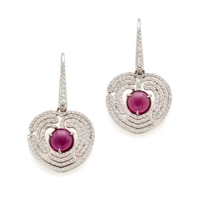 Orecchini in oro con perle, diamanti e rubini