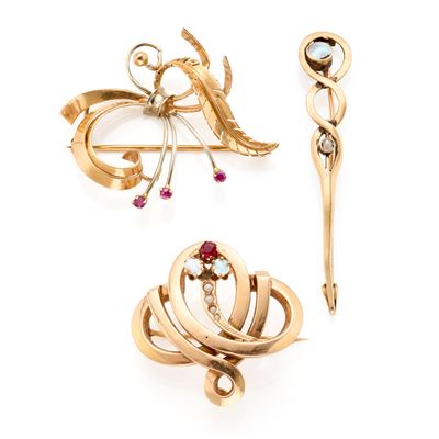 Lotto composto da tre spille in oro