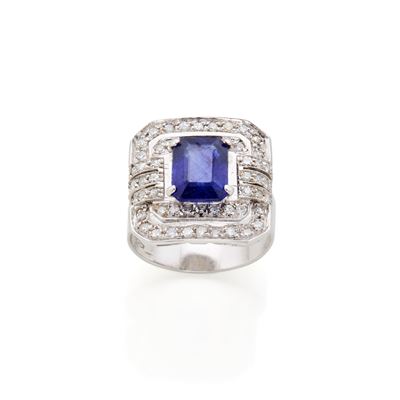 Anello in oro, diamanti e zaffiro