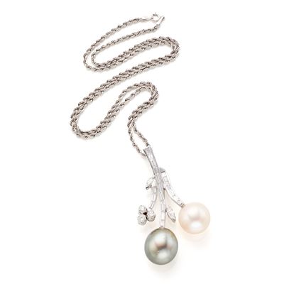 Catenina torchon con pendente in oro con perle e diamanti