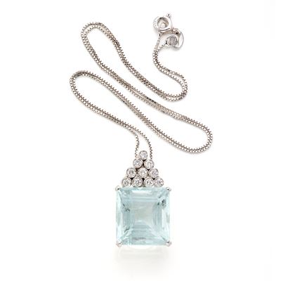 Pendente in oro con acquamarina e diamanti con catenina in argento