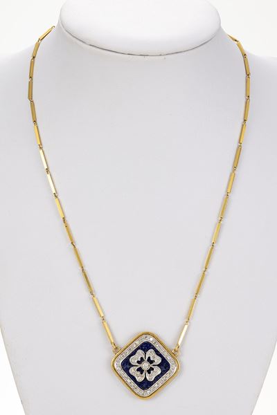 Orecchini A Clips In Oro Giallo Con Giadaite, Lapislazzuli E Diamanti
