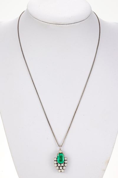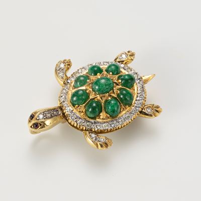 Pendente A Tartaruga In Oro Con Radici DI Smeraldo E Diamanti