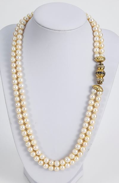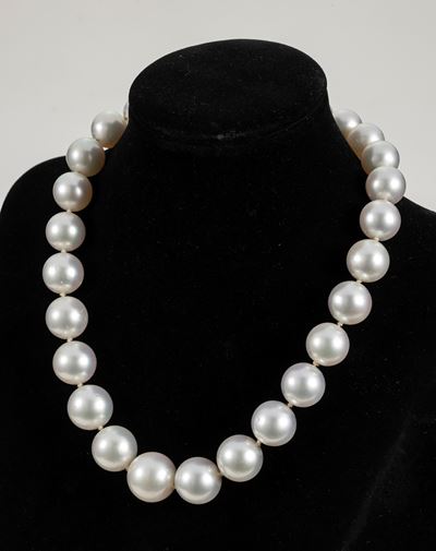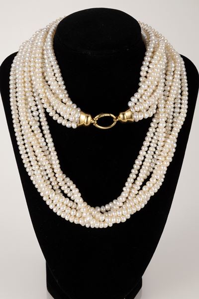 Collana In Oro Bianco Con Corallo Bianco E Perle