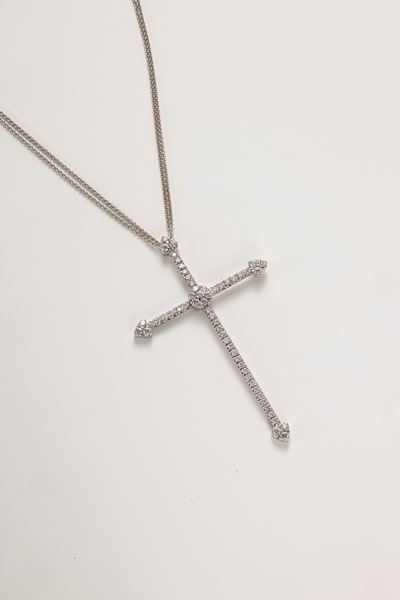 Spilla Rettangolare In Oro Bianco Con Diamante