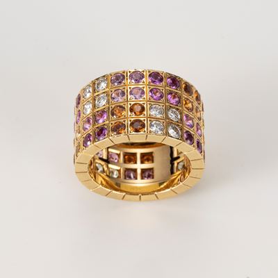 Anello A Fascia In Oro Giallo Con Zaffiro E Diamanti